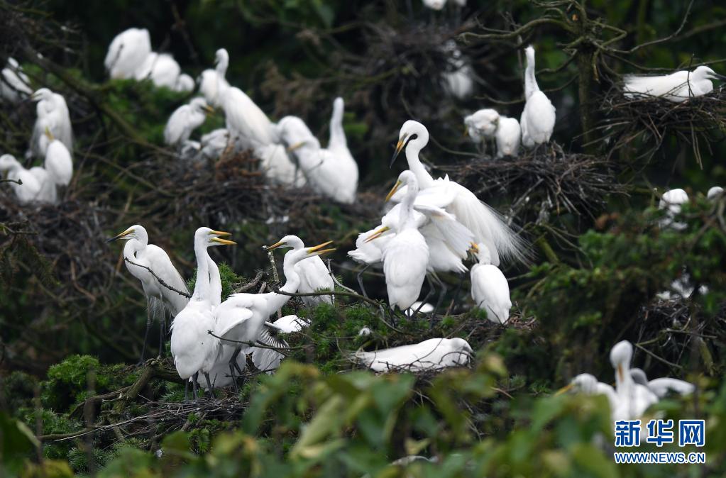 近期,在位于鄱陽湖畔的江西省南昌市新建區(qū)象山森林公園內,已安家筑巢的鷺鳥進入孵化哺育旺季。象山森林公園有著“鷺鳥王國”的美譽,每年都會吸引白鷺、蒼鷺、夜鷺等種類的鷺鳥飛抵棲息和繁衍后代。