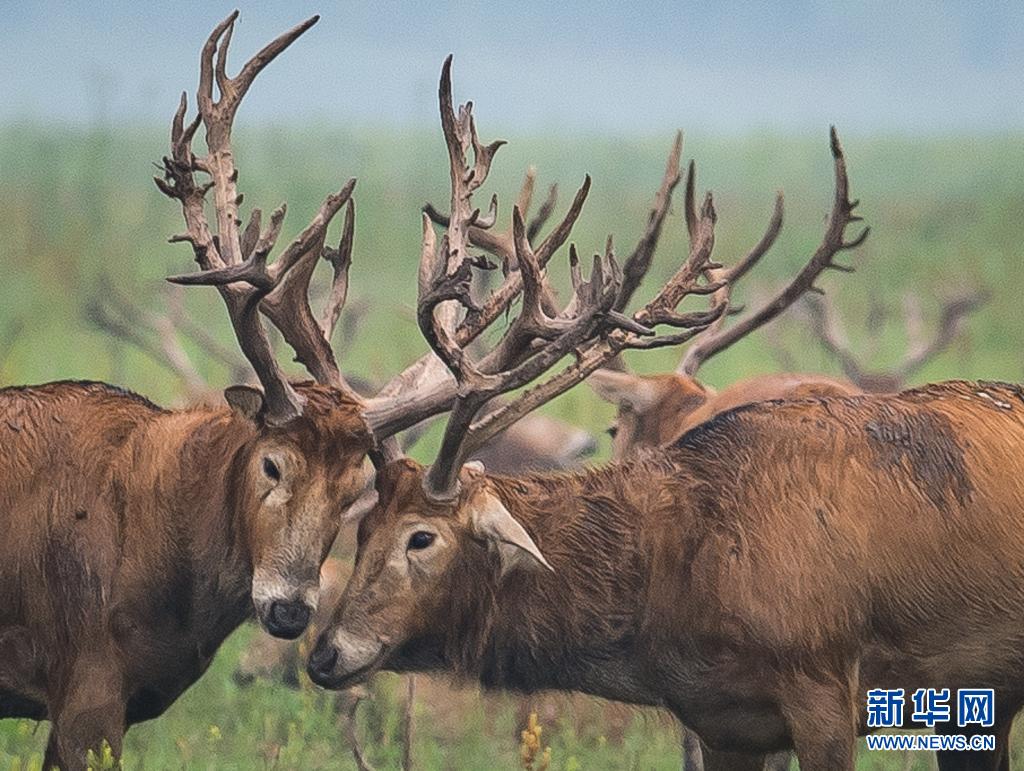 5月17日,麋鹿在石首麋鹿國(guó)家級(jí)自然保護(hù)區(qū)內(nèi)活動(dòng)。新華社記者 肖藝九 攝