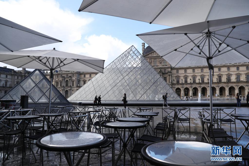 5月19日,法國(guó)巴黎盧浮宮博物館旁的餐館戶外區(qū)域準(zhǔn)備迎客。