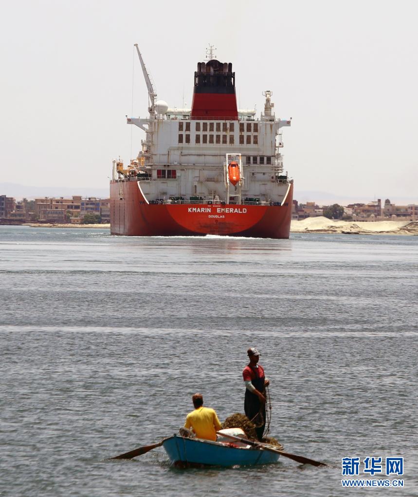 這是5月30日在埃及伊斯梅利亞省拍攝的航行在蘇伊士運(yùn)河上的貨船。
