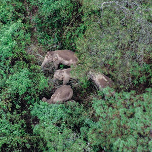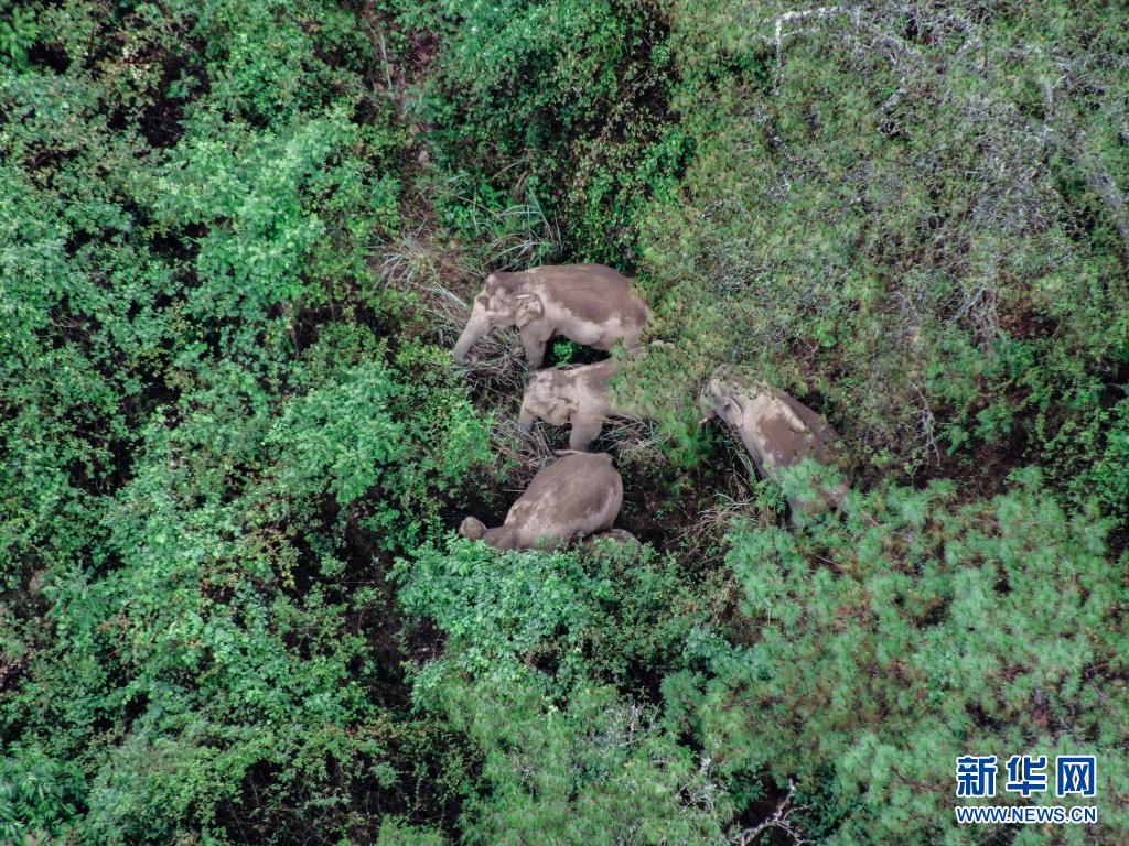 6月5日在云南省昆明市晉寧區(qū)拍攝的野象(無(wú)人機(jī)照片)。