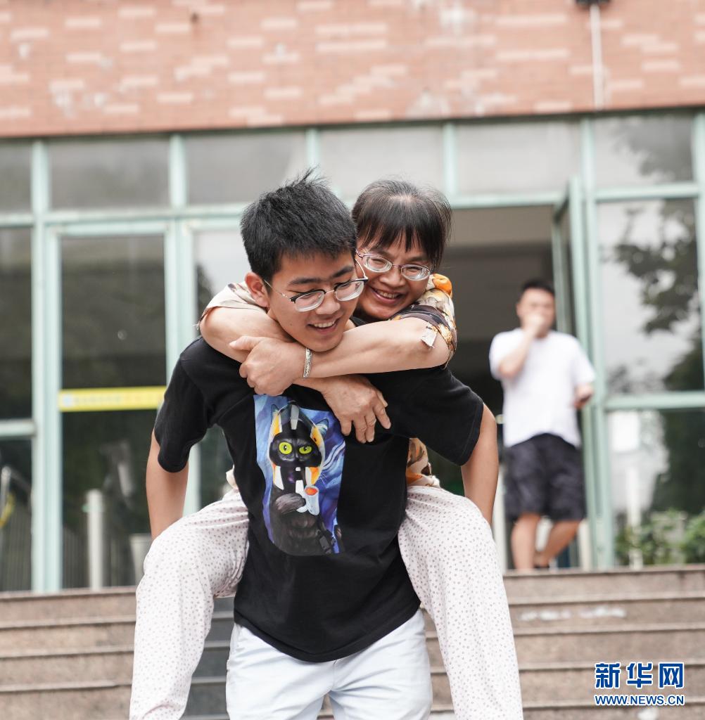 6月1日,趙建軍背著母親下臺階。新華社記者胡晨歡攝