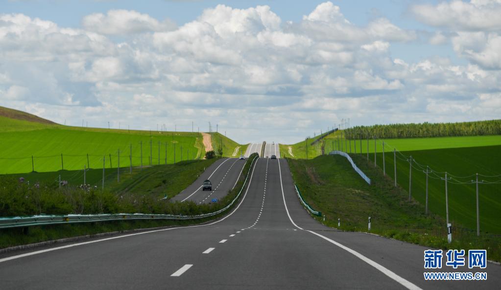 內蒙古呼倫貝爾332國道旁景色迷人(6月10日攝)。