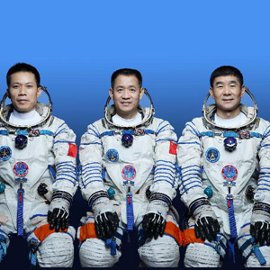 神舟十二號飛行任務乘組:聶海勝(中)、劉伯明(右)、湯洪波(左)。 新華社發(fā)(徐部 攝)