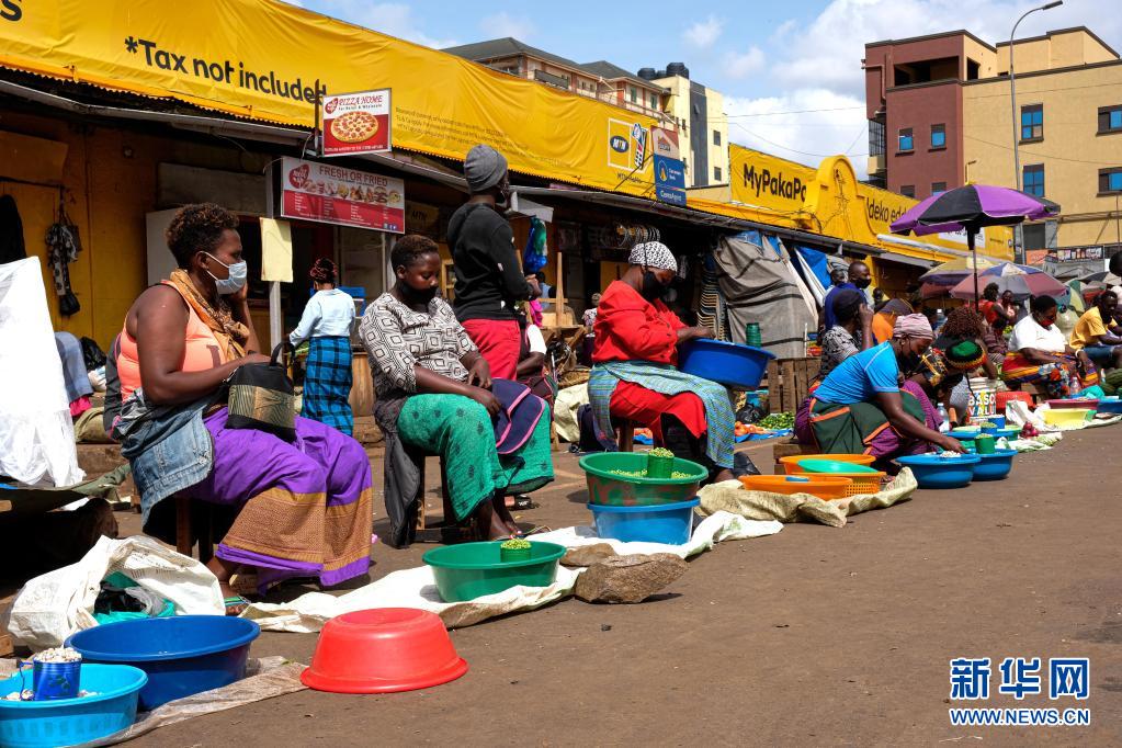6月23日,商販們?cè)跒醺蛇_(dá)坎帕拉的納卡塞羅市場販賣商品。