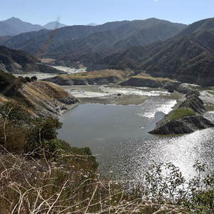 這是6月24日拍攝的美國(guó)加利福尼亞州洛杉磯縣阿祖薩市附近的圣加布里埃爾水庫。