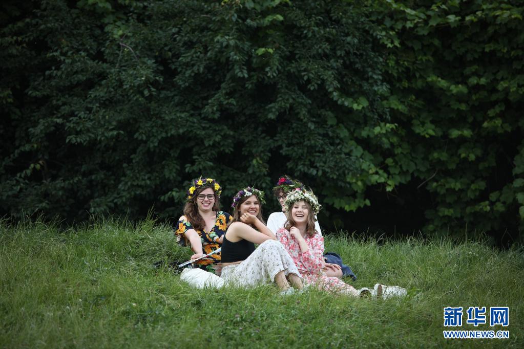 6月26日,女孩們佩戴花冠在波蘭首都華沙參加夏日文化娛樂活動(dòng)。