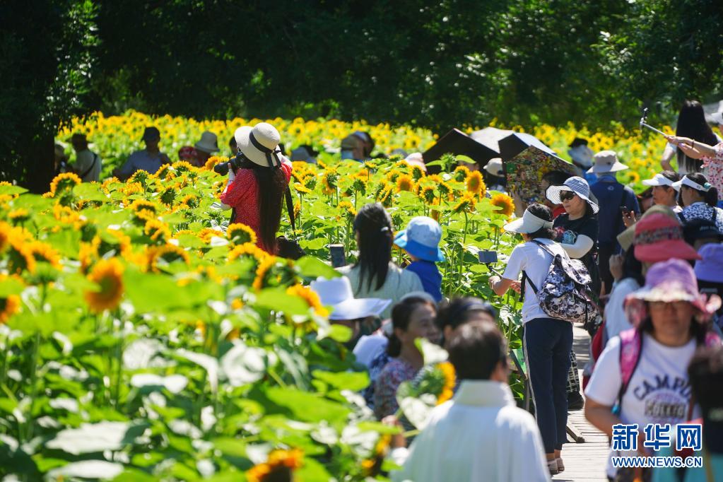 日前,北京奧林匹克森林公園北園的向日葵進(jìn)入盛花期,眾多市民和游客前來(lái)觀賞。