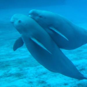 在中國科學(xué)院水生生物研究所白鱀豚館里,生活著一對江豚母子——母豚洋洋和小江豚YYC。