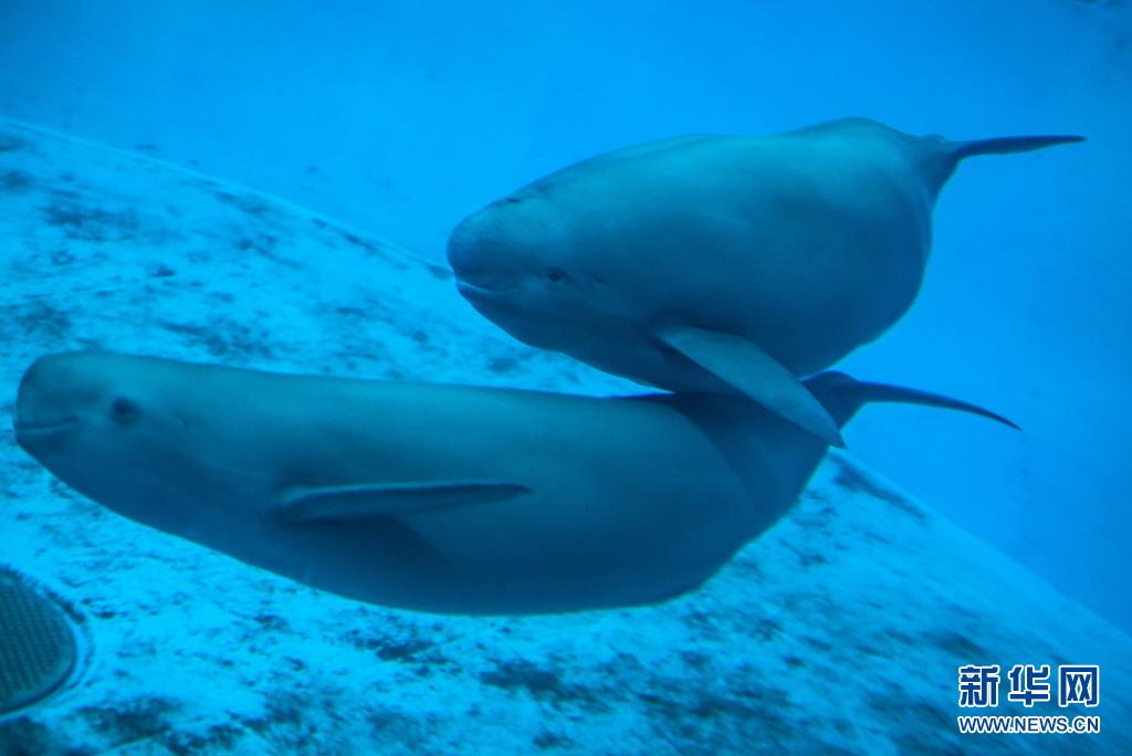 7月5日,江豚媽媽洋洋和小江豚YYC在水中游動(dòng)。新華社記者肖藝九攝