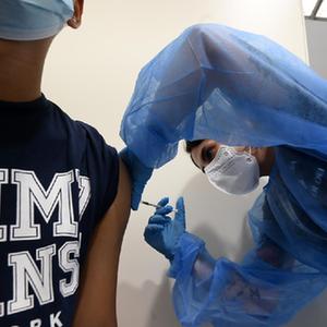 7月6日,醫(yī)務人員在意大利羅馬一處新冠疫苗接種點為一名男子接種新冠疫苗。