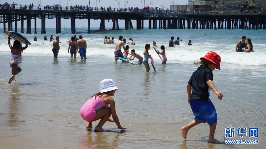 7月11日,人們?cè)诿绹?guó)加利福尼亞州圣莫尼卡海灘消暑。
