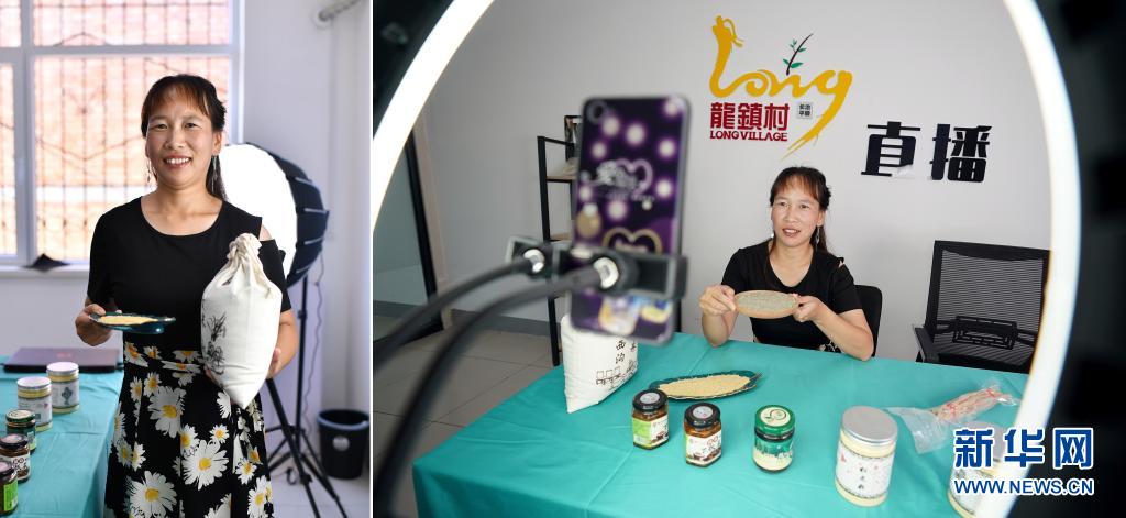 拼版照片:左圖為宋俊麗在山西省平順縣龍鎮(zhèn)村電商服務(wù)中心直播間里;右圖為宋俊麗通過(guò)網(wǎng)絡(luò)直播介紹農(nóng)產(chǎn)品(7月8日攝)。2018年,時(shí)年29歲的宋俊麗參加了縣里組織的電商培訓(xùn),在電商導(dǎo)師的鼓勵(lì)下,她嘗試了首次直播,當(dāng)時(shí)直播間里只有幾名觀眾。在自己的堅(jiān)持和電商導(dǎo)師的幫助下,如今她已收獲了不少粉絲,每次上線直播,粉絲們都會(huì)讓她推薦當(dāng)?shù)氐奶厣r(nóng)產(chǎn)品。