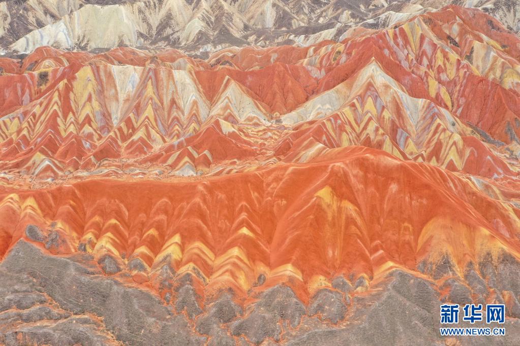 張掖世界地質(zhì)公園的一處彩色丘陵地貌景觀(7月14日攝,無人機照片)。