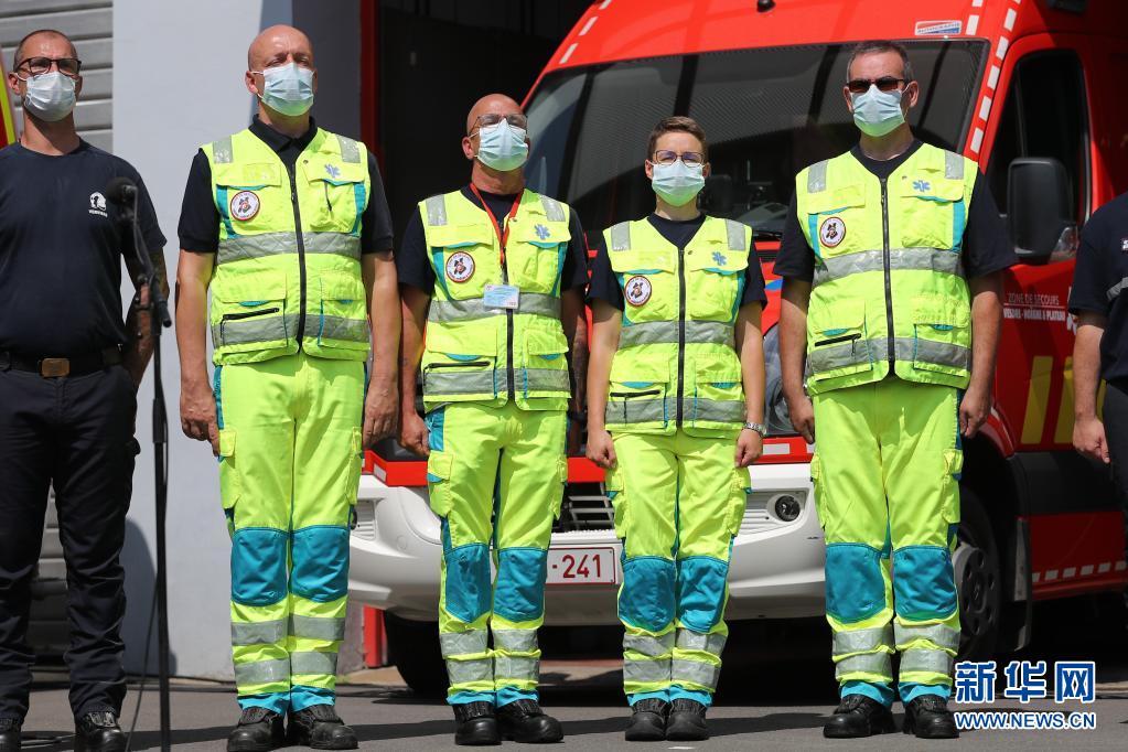 7月20日,救護(hù)隊(duì)員在比利時(shí)南部城市韋爾維耶出席悼念儀式。