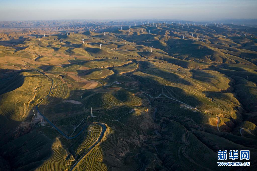 位于寧夏吳忠市同心縣境內(nèi)的窯山,山坡被綠色覆蓋(6月22日攝,無人機照片)。新華社記者 楊植森 攝