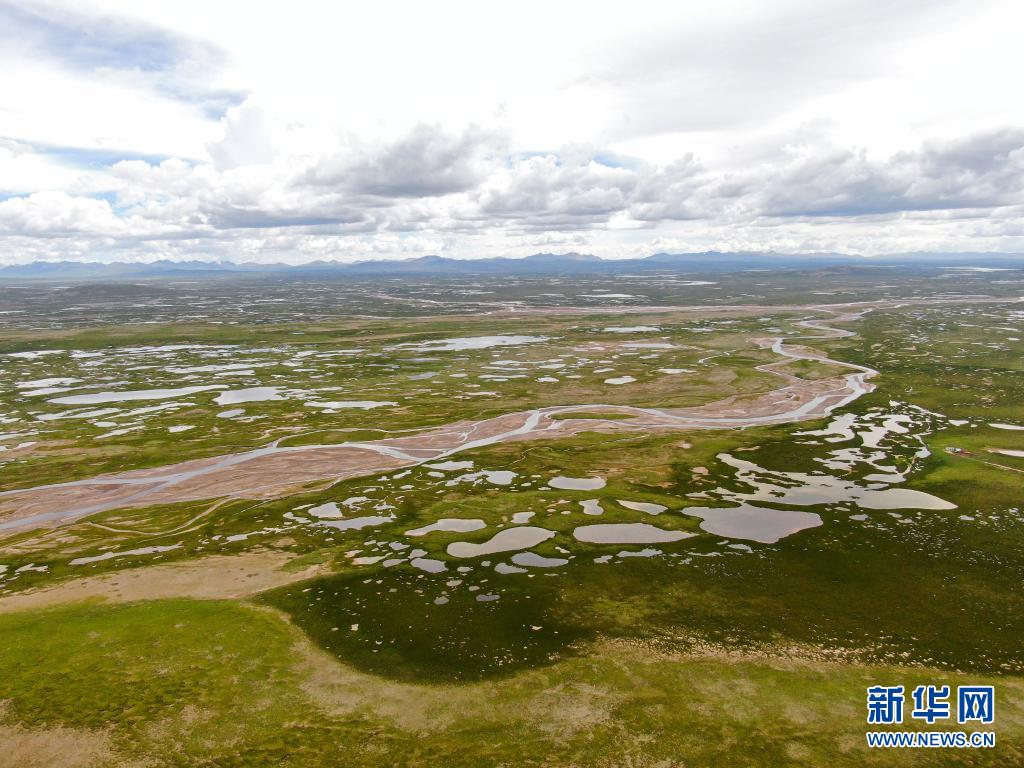 這是7月23日拍攝的長(zhǎng)江源地區(qū)的查旦濕地(無人機(jī)照片)。