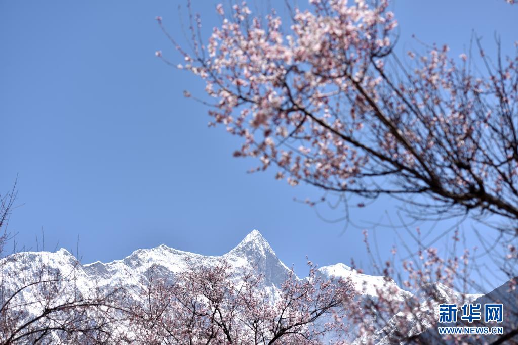 這是3月28日拍攝的桃花掩映下的南迦巴瓦峰。