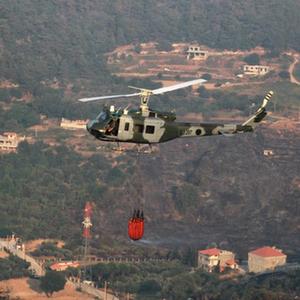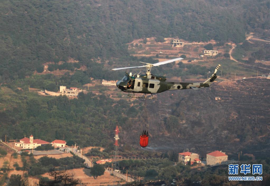 7月29日,黎巴嫩軍方直升機(jī)在阿卡爾省火災(zāi)現(xiàn)場參與滅火行動。