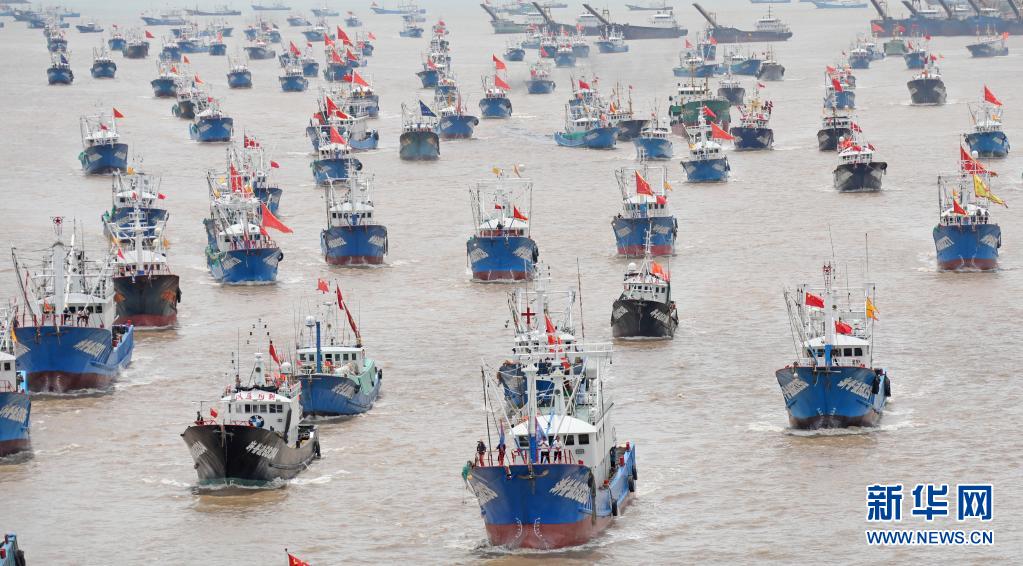 當日中午12時,浙江沿海地區(qū)的部分漁船結(jié)束伏季休漁,駛出漁港,奔赴漁場。