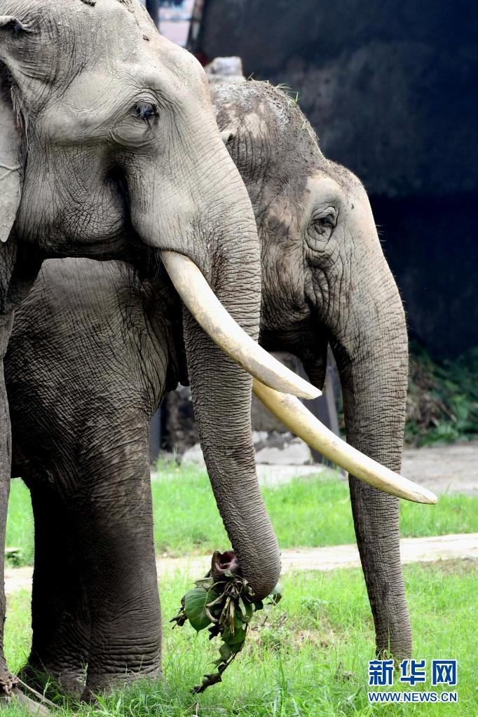 這是8月1日在印度新德里動物園拍攝的大象。