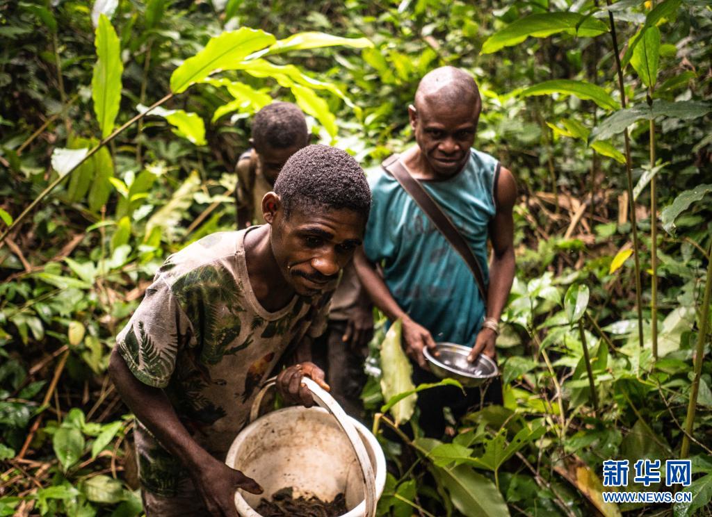 7月18日清晨,中非共和國(guó)洛巴耶省當(dāng)?shù)氐馁赂衩兹嗽谏掷镎蚁x子。