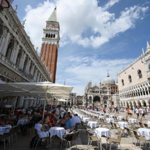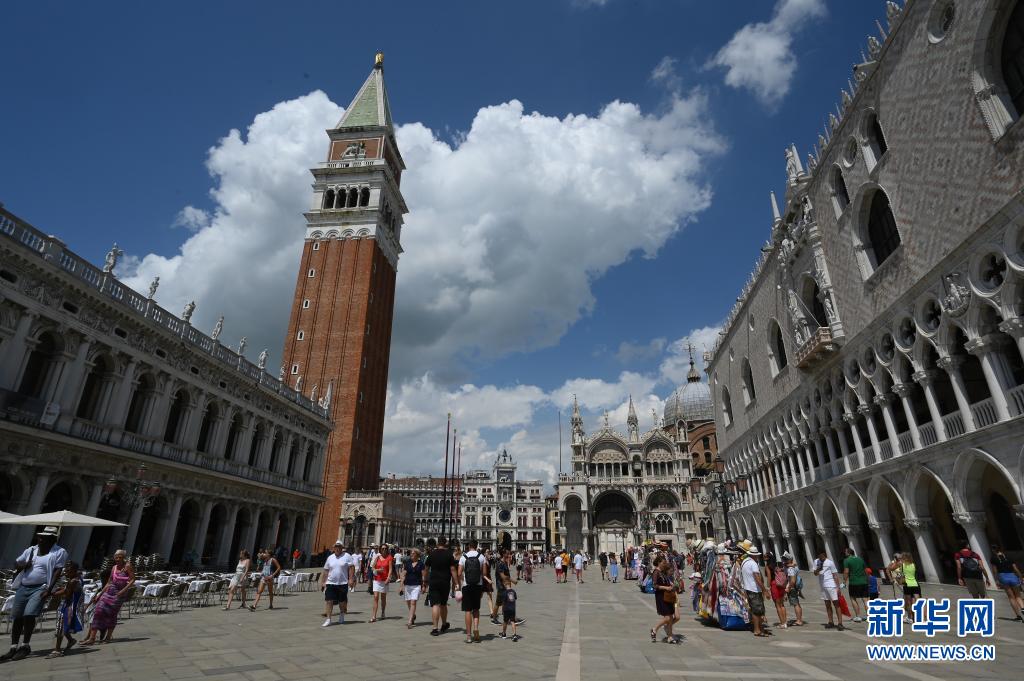 8月3日,游客在意大利威尼斯的圣馬可廣場(chǎng)游覽。