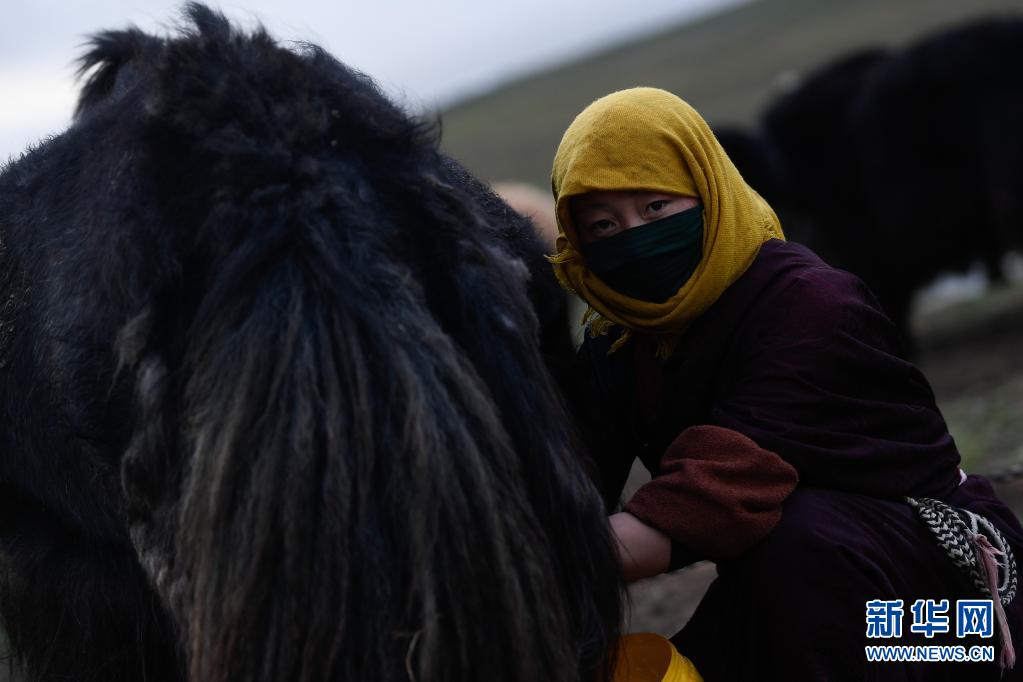 8月3日,在瑪沁縣當洛鄉(xiāng)貢龍村的夏季草場上,牧民在擠奶。