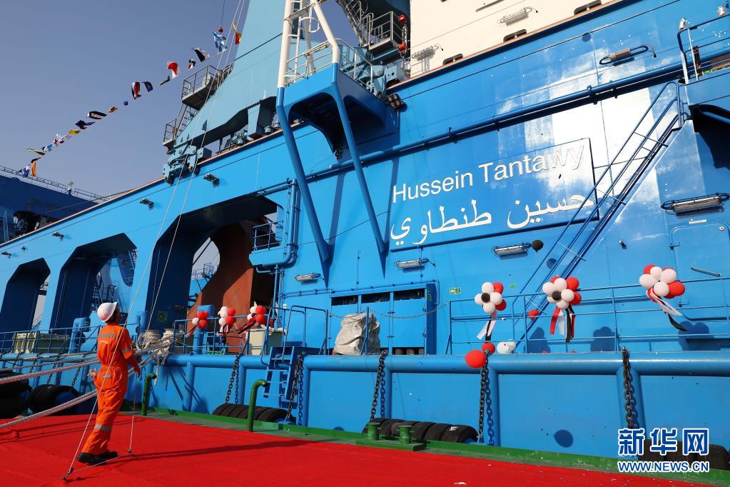 當(dāng)日,埃及蘇伊士運(yùn)河管理局在伊斯梅利亞舉行儀式,迎接最新購(gòu)入的“侯賽因·坦塔維”號(hào)大型絞吸式挖泥船。