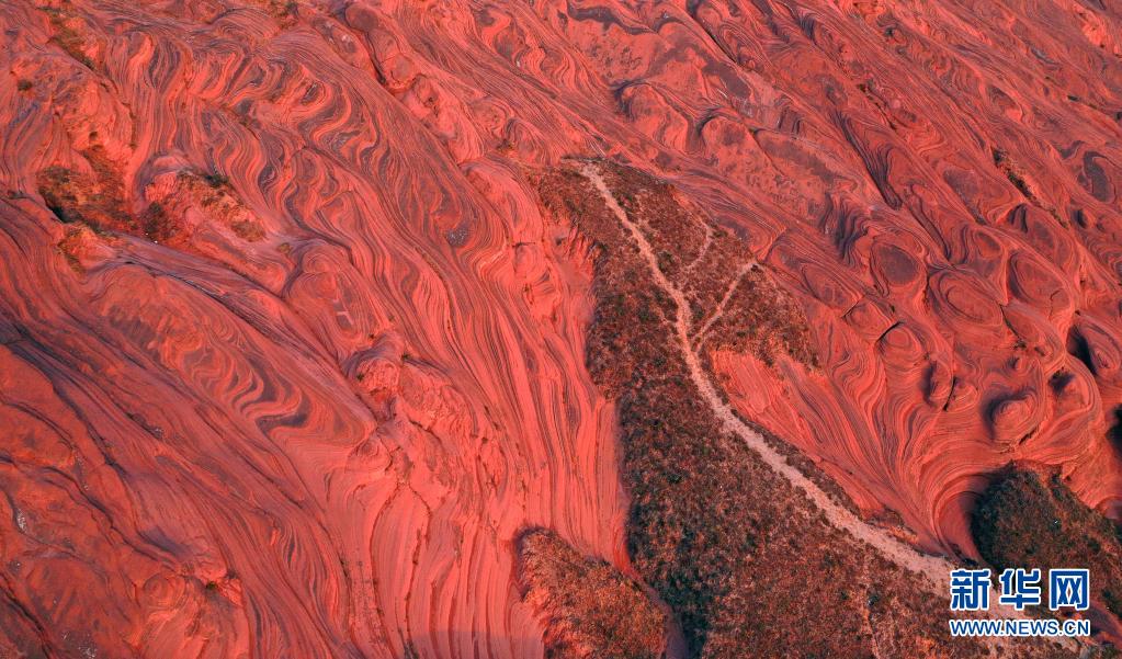 陜西省靖邊縣龍洲鎮(zhèn)波浪谷丹霞景區(qū)地處陜北黃土高原,峽谷四面環(huán)山,線谷、巷谷、絕壁等構(gòu)成了特有的波浪形砂巖地貌,景觀獨(dú)特。