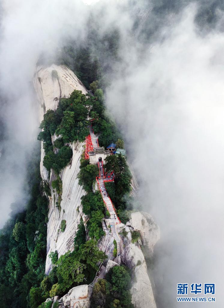 8月14日,云霧中的西岳華山金鎖關(guān)(無人機(jī)照片)。