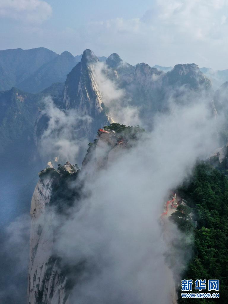 8月14日,云霧中的西岳華山風(fēng)光(無人機照片)。
