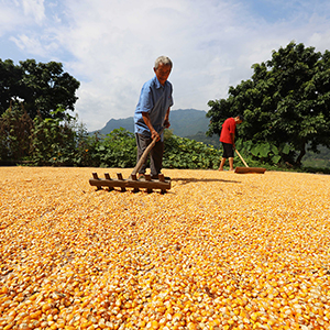 立秋過后,貴州省赤水市農(nóng)民種植的水稻、高粱、玉米、辣椒等農(nóng)作物迎來收獲季,當(dāng)?shù)卮迕駬屪デ绾锰鞖鈱⑹斋@的農(nóng)作物鋪放在房前屋后的壩子中進行晾曬,構(gòu)成一幅幅美麗的“曬秋圖”。