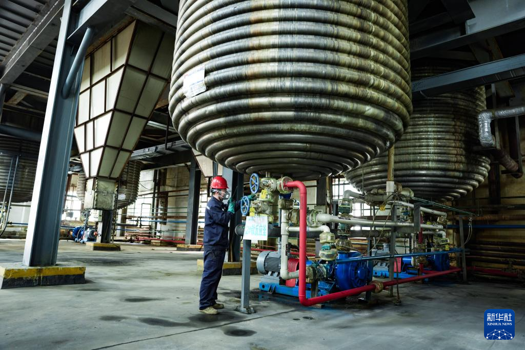 4月13日,在金昌神泥科技有限公司浸出车间,工作人员操作压滤机进行压滤作业。