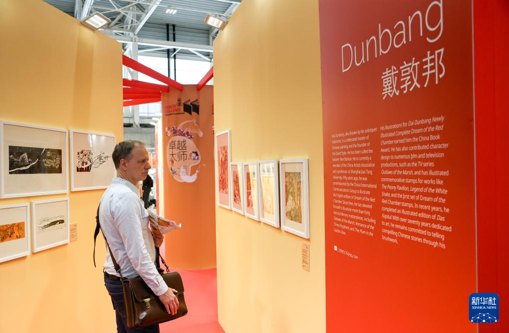 4月13日,在意大利博洛尼亚举行的博洛尼亚国际童书展上,观众参观中国展区。