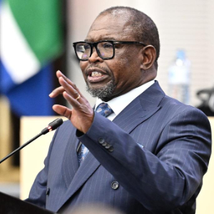 这是2月25日南非财政部长埃诺赫·戈东瓜纳在开普敦向南非议会提交2026年预算案并发表讲话的资料照片。