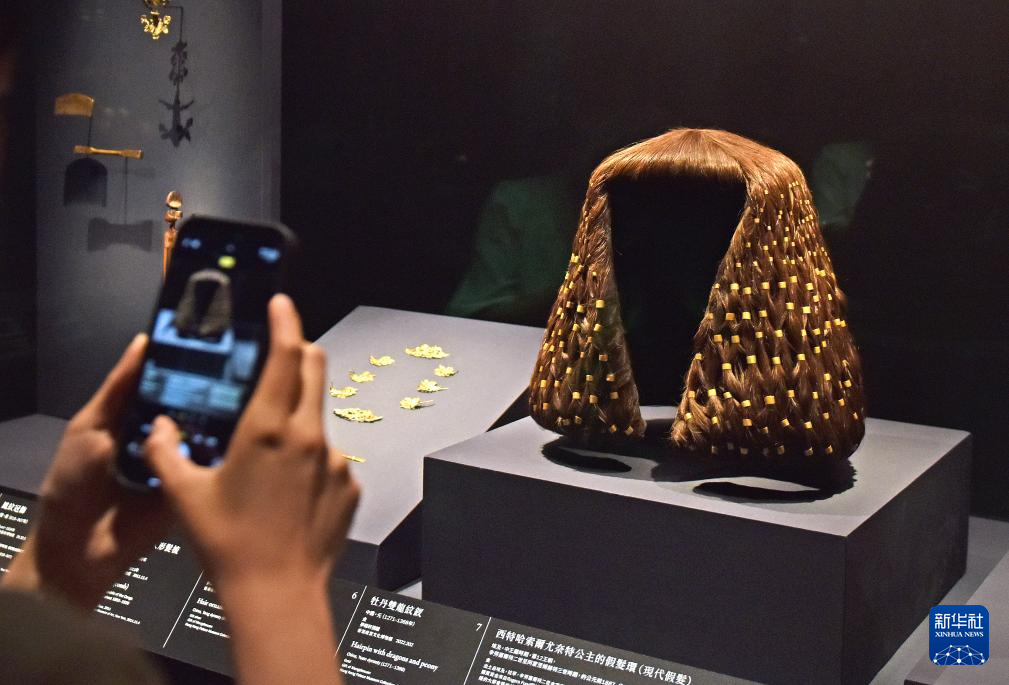 4月14日,媒体记者在拍摄一款假发环。
