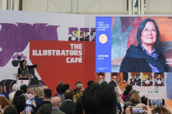 4月13日,在意大利博洛尼亚举行的博洛尼亚国际童书展上,观众从展会主题海报前走过。