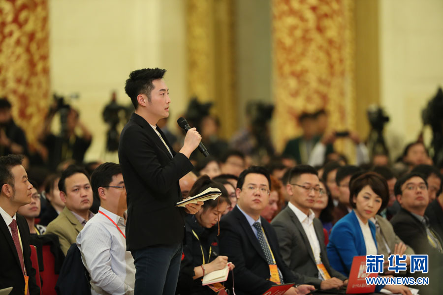 2017年10月17日下午,中國共產黨第十九次全國代表大會新聞發(fā)言人在人民大會堂三樓金色大廳舉行新聞發(fā)布會,并回答中外記者提問。圖為人民日報記者提問。新華網(wǎng) 翟子赫 攝