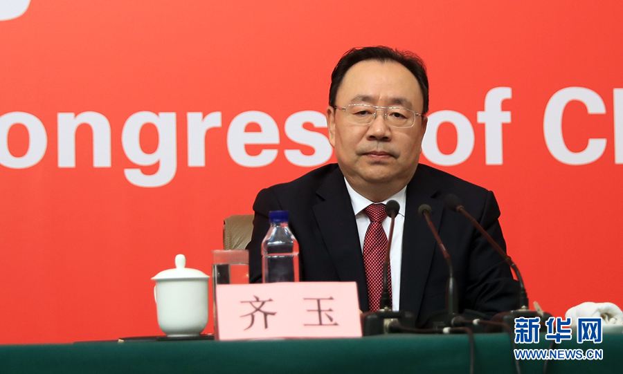 ??? 10月19日,十九大新聞中心舉行記者會,邀請中紀(jì)委、中組部負(fù)責(zé)人介紹黨的建設(shè)和全面從嚴(yán)治黨相關(guān)情況。圖為中共中央組織部副部長齊玉。新華網(wǎng) 郝廣鵬攝