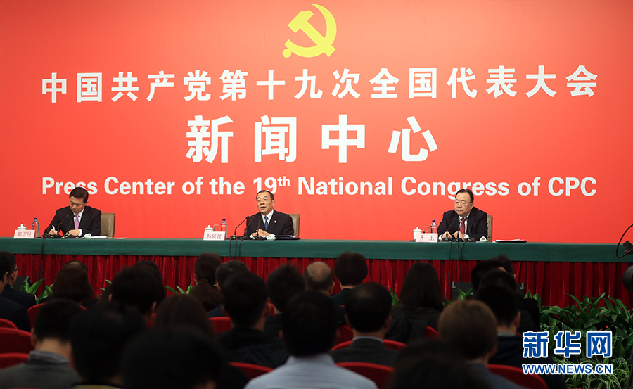 ??? 10月19日,十九大新聞中心舉行記者會,邀請中紀(jì)委、中組部負(fù)責(zé)人介紹黨的建設(shè)和全面從嚴(yán)治黨相關(guān)情況。圖為記者會現(xiàn)場。新華網(wǎng) 郝廣鵬攝