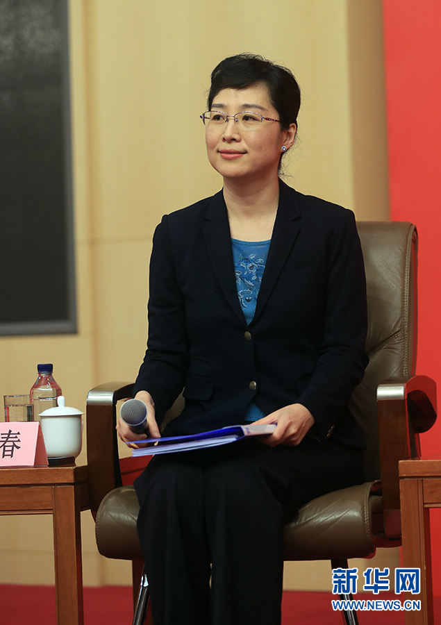 ??? 10月19日,十九大新聞中心舉辦集體采訪,邀請(qǐng)政法戰(zhàn)線代表談全面推進(jìn)依法治國(guó)。圖為主持人襲艷春。新華網(wǎng) 郝廣鵬攝