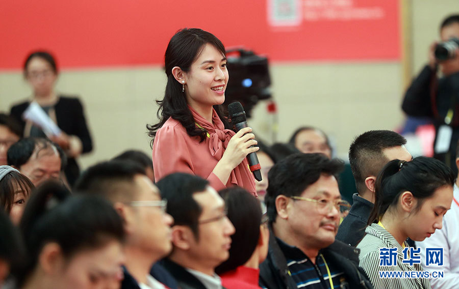 ??? 10月20日,十九大新聞中心舉辦集體采訪活動,主題為“文化發(fā)展開創(chuàng)新局面”。圖為經(jīng)濟(jì)日報記者提問。新華網(wǎng) 翟子赫攝