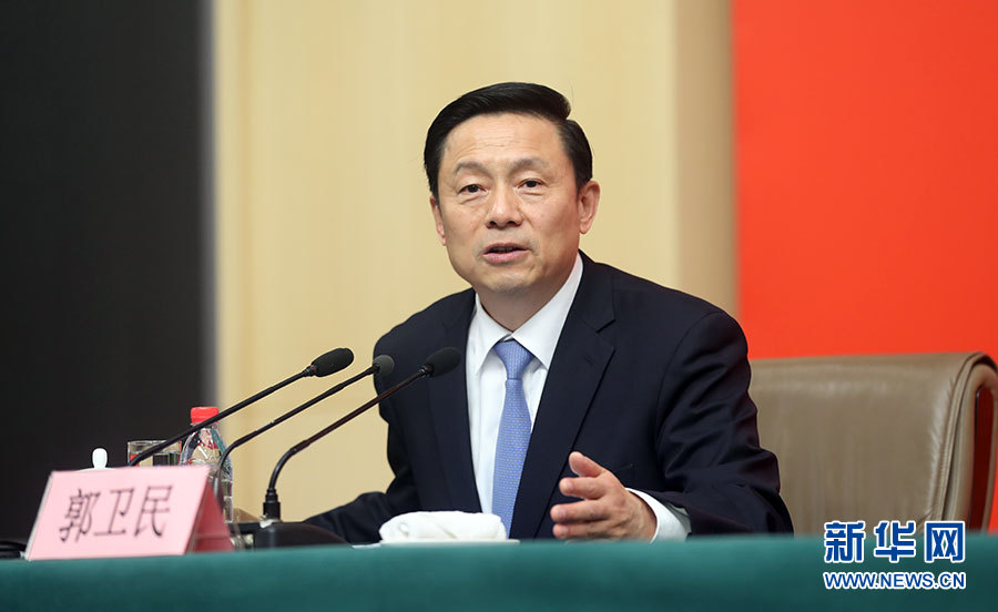 ??? 10月21日,十九大新聞中心舉辦記者招待會,邀請中共中央統(tǒng)戰(zhàn)部常務副部長張裔炯、副部長冉萬祥,中共中央對外聯(lián)絡(luò)部副部長郭業(yè)洲介紹黨的統(tǒng)一戰(zhàn)線工作和黨的對外交往情況,并回答記者提問。圖為主持人郭衛(wèi)民。新華網(wǎng) 郝廣鵬攝
