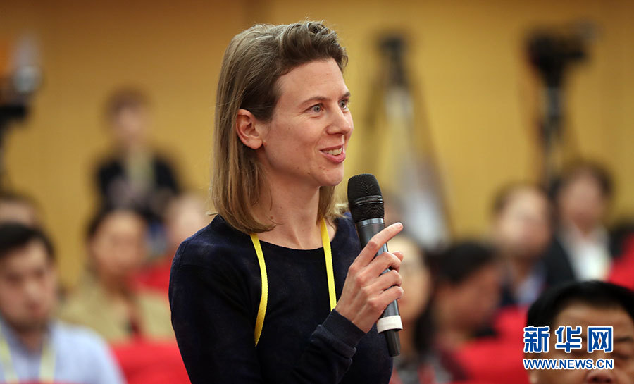 10月21日,十九大新聞中心舉辦集體采訪活動(dòng),主題為“農(nóng)業(yè)科技創(chuàng)新”。圖為路透社記者提問。新華網(wǎng) 郝廣鵬攝