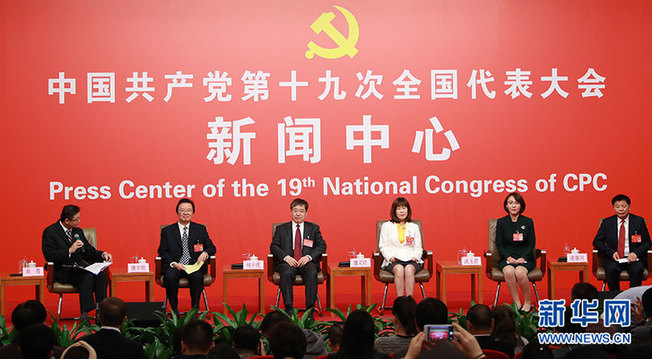 ???? 10月21日,十九大新聞中心舉辦集體采訪活動(dòng),主題為“農(nóng)業(yè)科技創(chuàng)新”。圖為集體采訪活動(dòng)現(xiàn)場(chǎng)。新華網(wǎng) 郝廣鵬攝
