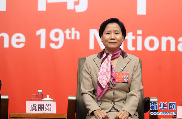 10月22日,十九大新聞中心在梅地亞中心二層新聞發(fā)布廳舉辦集體采訪活動,邀請教育領(lǐng)域代表談“教育綜合改革”。圖為上海市教育衛(wèi)生工作黨委書記虞麗娟。新華網(wǎng) 郝廣鵬攝