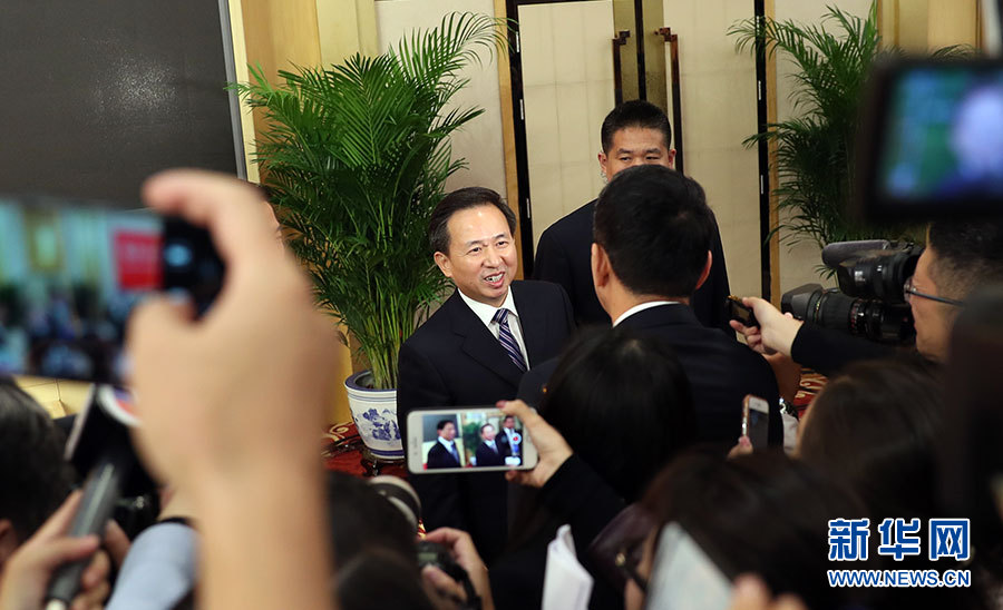 10月23日,十九大新聞中心舉辦記者招待會(huì),邀請中央財(cái)經(jīng)領(lǐng)導(dǎo)小組辦公室副主任楊偉民,環(huán)境保護(hù)部黨組書記、部長李干杰介紹踐行綠色發(fā)展理念,建設(shè)美麗中國有關(guān)情況,并回答記者提問。圖為環(huán)境保護(hù)部黨組書記、部長李干杰接受記者采訪。新華網(wǎng) 郝廣鵬攝