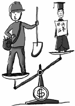 農(nóng)民工被“幸?!迸c大學(xué)生被“懂事”,掩蓋了農(nóng)民工薪酬普遍偏低與大學(xué)生就業(yè)難的事實(shí)。而糾結(jié)于兩者之間的一個(gè)詞叫“知識(shí)”。農(nóng)民工并非沒(méi)有知識(shí),就某一崗位而言,他們的實(shí)際知識(shí)可能豐富得很,專(zhuān)業(yè)技能也爐火純青,但他們得到的回報(bào)與艱辛的付出明顯不匹配,打工者往往十年如一日地和機(jī)器站在一起忙碌著,但是最后留給他們的可支配收入并不多。而大學(xué)畢業(yè)生,不管他們?cè)诖髮W(xué)里學(xué)到了多少知識(shí),或?qū)W到的知識(shí)是否有利于就業(yè),對(duì)他們中的很多人來(lái)說(shuō),家庭為購(gòu)買(mǎi)這“知識(shí)”付出的成本是極大的,教育高投入?yún)s不能實(shí)現(xiàn)高產(chǎn)出,甚至還要與不曾付出高教育成本的民工爭(zhēng)一日之短長(zhǎng),顯然也是于心不甘的。 …[詳細(xì)] |