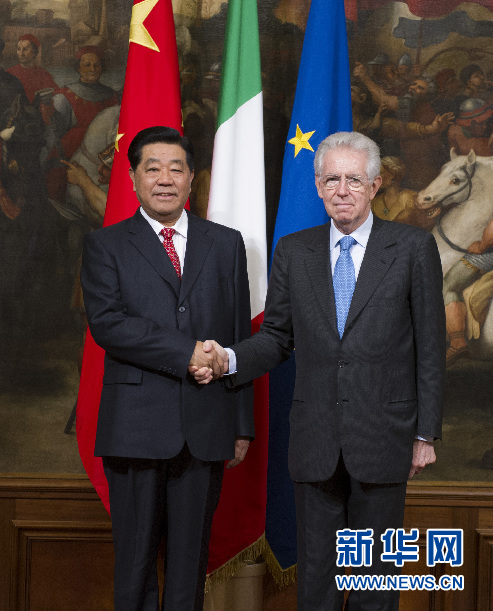 賈慶林會見意大利總理蒙蒂